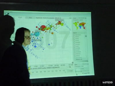 Hans, a medical doctor out of the Karolinska Institute in Sweden, has developed a set of tools for visualizing data in a simple, intuitive, and informative way, and he ruptures a lot of myths in his moving bubble diagrams. His work on HIV, on investments in the developing world, the relationships between education and child health, and more, has affected thinking – and policy – at national and international levels. He’s a phenomenal teacher, and to have him spend two hours at our iLab, talking about Cambodia to our Cambodian staff (and lots of visitors for the occasion), was a wonderful stroke of good fortune.